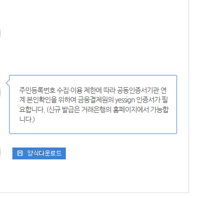 | 사업자 공인인증서 또는 공동인증서 | 전자서명 및 본인 확인용 |